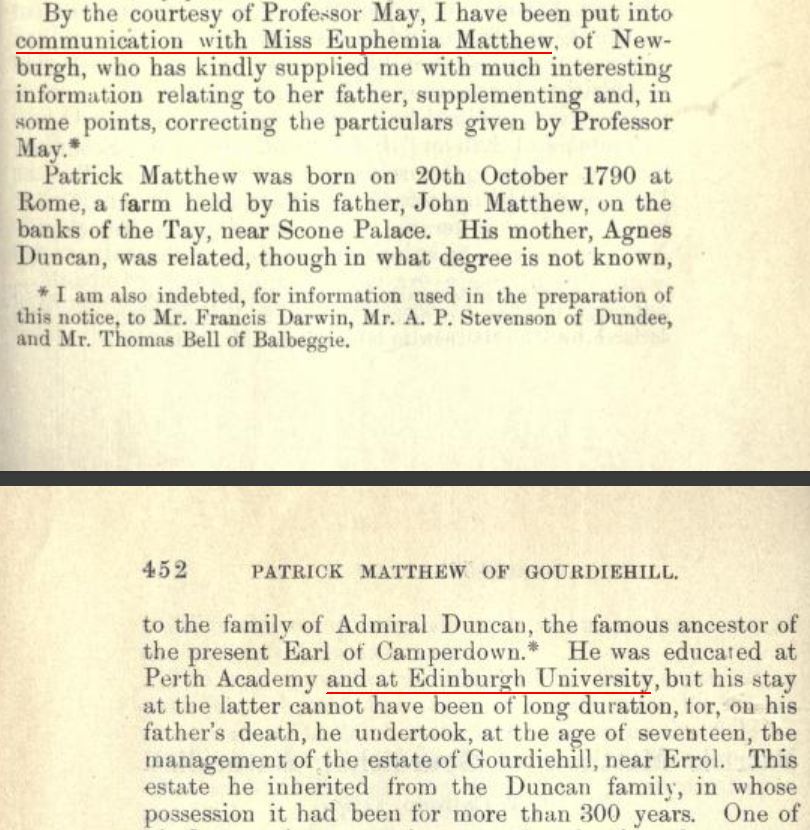 For a start, the fact that William Jardine purchased for Selby a copy of NTA (Jackson 1992), that Selby then cited it and that the two of them later jointly published Wallace's 1855 Sarawak paper, which is his first paper on evolution, creates massive doubt that Wallace arrived at his ideas independently, because this newly discovered fact brings Wallace, most incriminatingly, right into the center of Matthew's orbit, albeit via Wallace's immediate scientific associates who so greatly facilitated his career as an evolutionist. (Sutton 2014, 78-79; see also Sutton 2014, 185-187)
